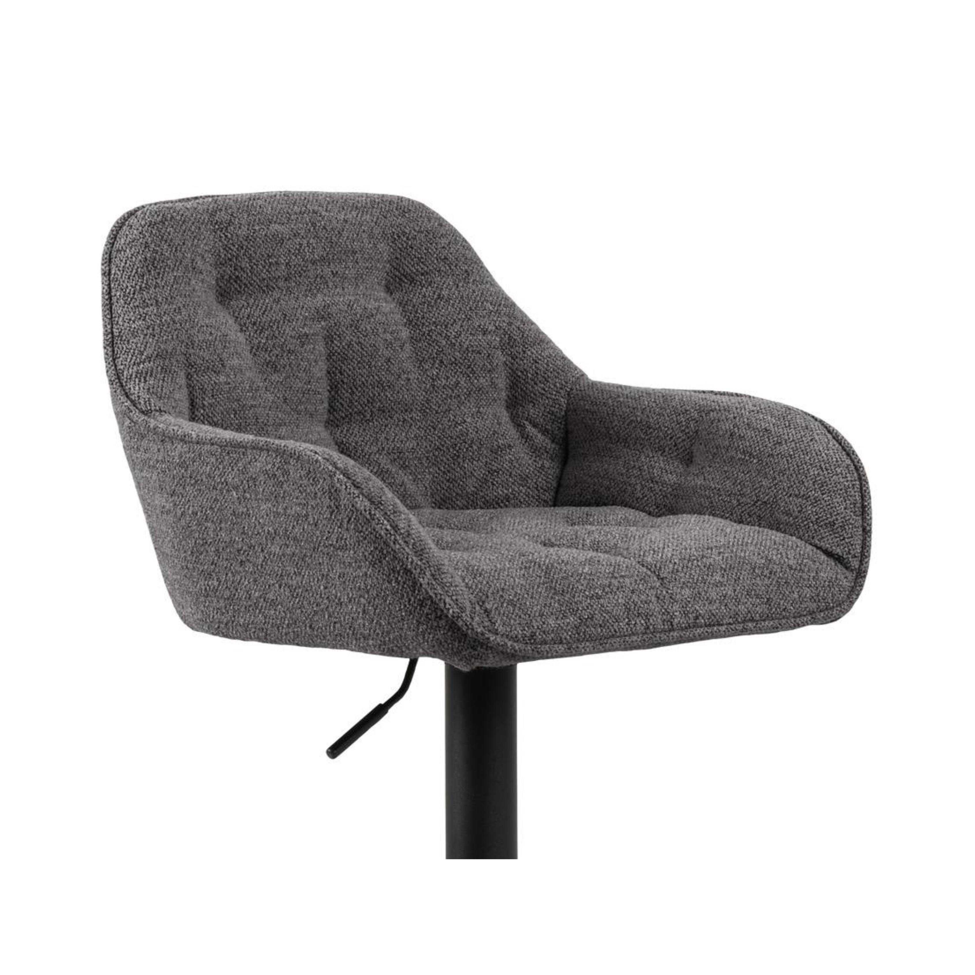 Wenn Sie auf der Suche nach einem stilvollen und funktionalen Barhocker für Ihre Heimbar oder Küchentheke sind, dann ist der Barhocker in Boucle Stoff anthrazit mit Rautenheftung und einem schwarzen Trompetenfuß-Gestell eine hervorragende Wahl. Dieser Hocker bietet nicht nur ein elegantes Design, sondern auch eine bequeme Sitzfläche, die mit hochwertigem Boucle Stoff in einem klassischen anthrazit Farbton bezogen ist. Die Rautenheftung verleiht dem Hocker eine ansprechende Note und macht ihn zu einem Blickfang in jedem Raum. Mit der Drehfunktion und der höhenverstellbaren Gasfeder kann der Barhocker individuell angepasst werden, um optimalen Komfort bei langen Sitzperioden zu bieten. Das Trompetenfuß-Gestell sorgt für eine hohe Stabilität und ein elegantes Erscheinungsbild.