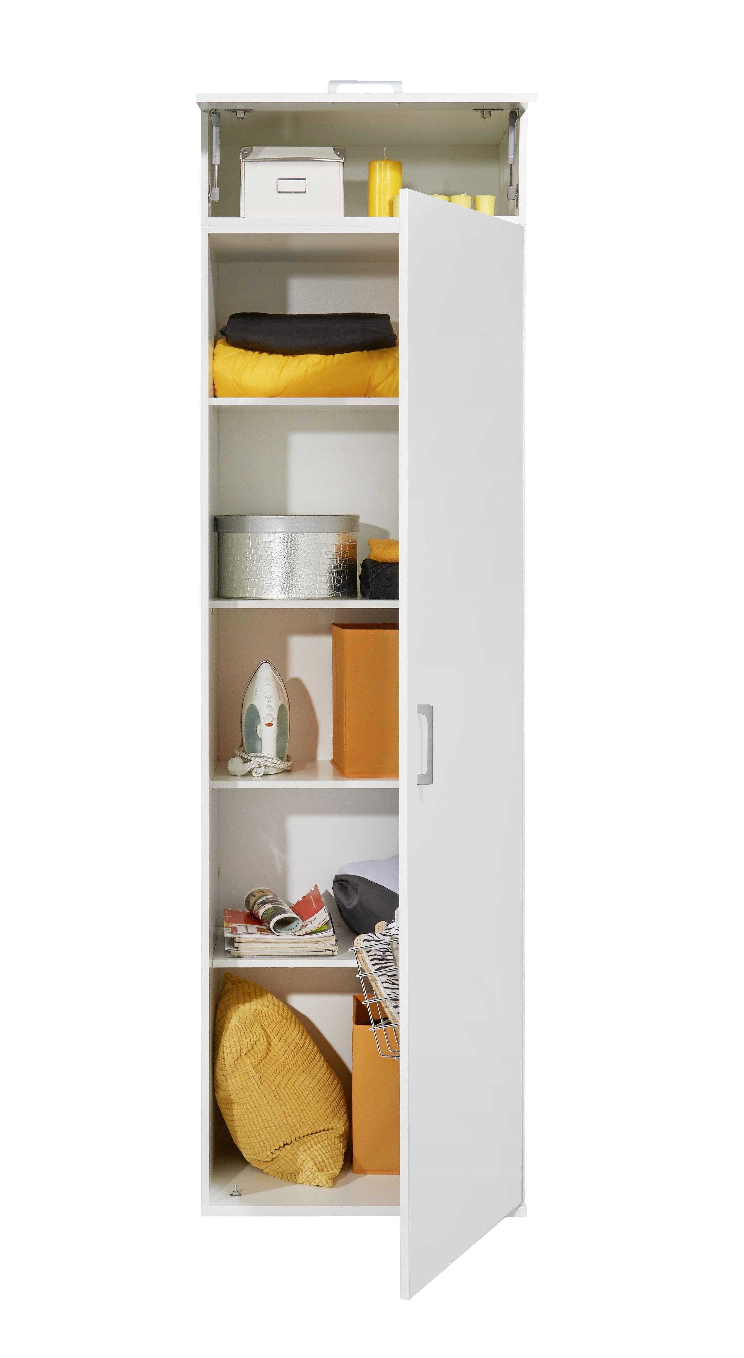 Der Hauswirtschaftsraum Aufsatz mit 26 cm Höhe bietet praktischen zusätzlichen Stauraum über Waschmaschine oder Trockner. Mit seinen kompakten Maßen von ca. 45 × 65,4 × 25,5 cm passt er ideal in moderne Hauswirtschaftsräume. Die weiße, melaminharzbeschichtete Oberfläche ist besonders abrieb-, stoß- und kratzfest, pflegeleicht und langlebig. Dank des zeitlosen Designs fügt sich der Aufsatz harmonisch in jedes Raumkonzept ein und sorgt für mehr Ordnung im Alltag.