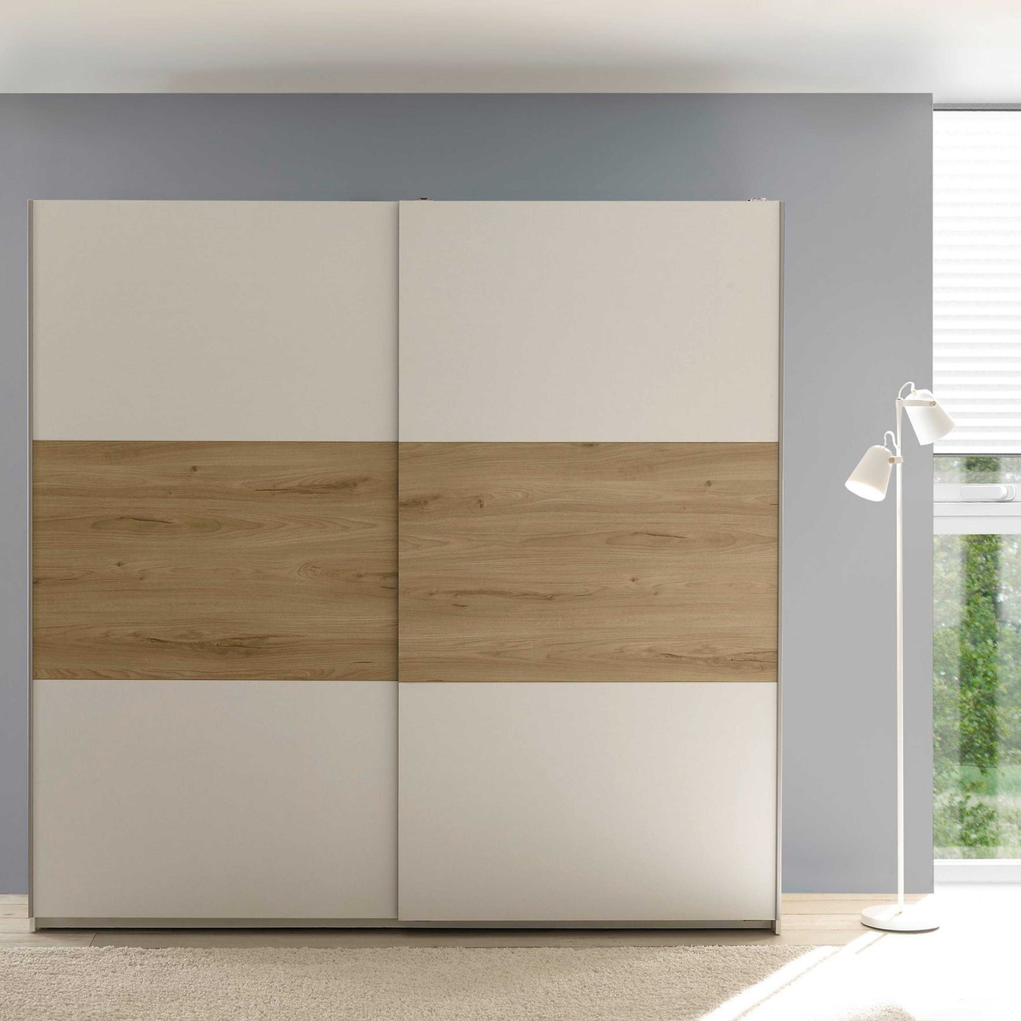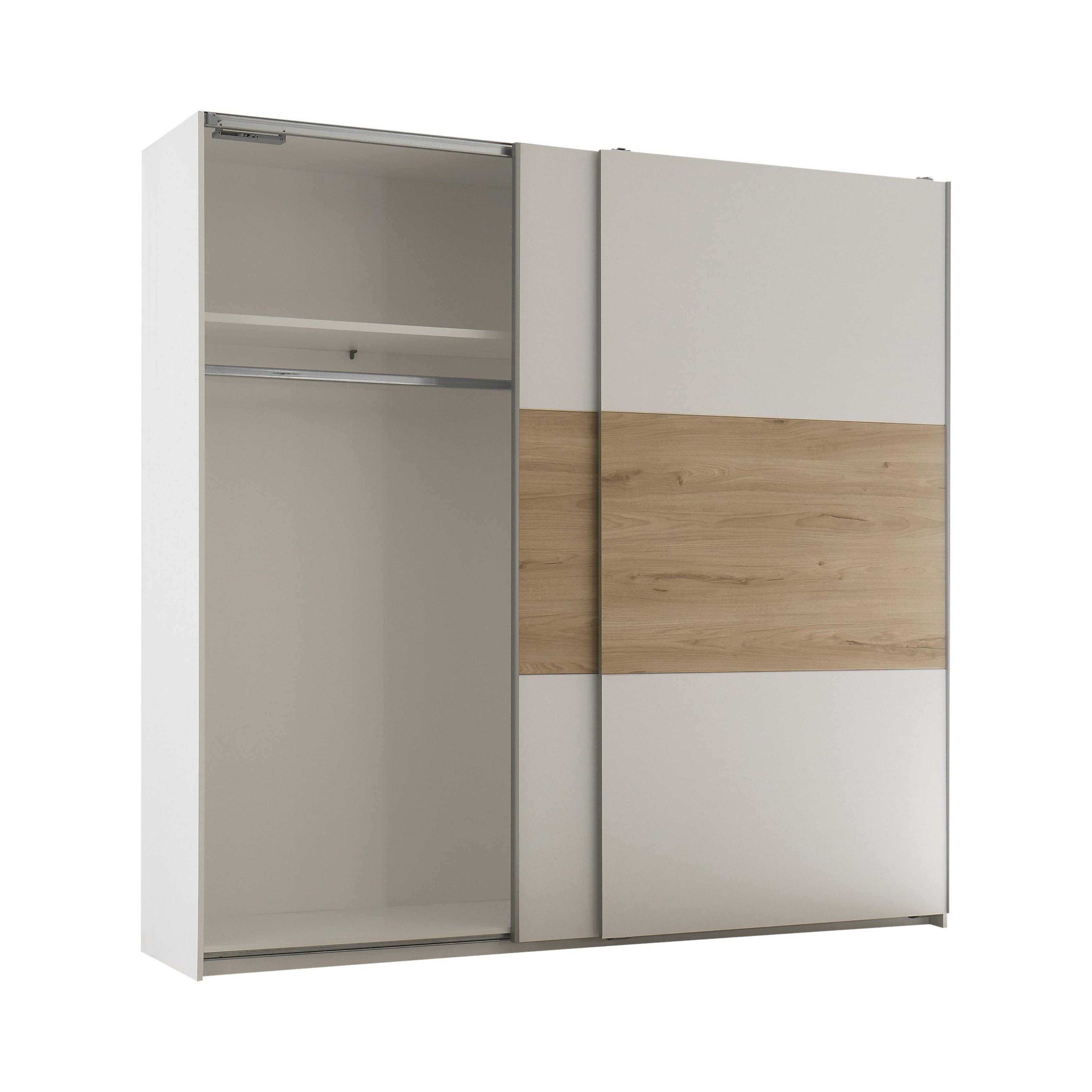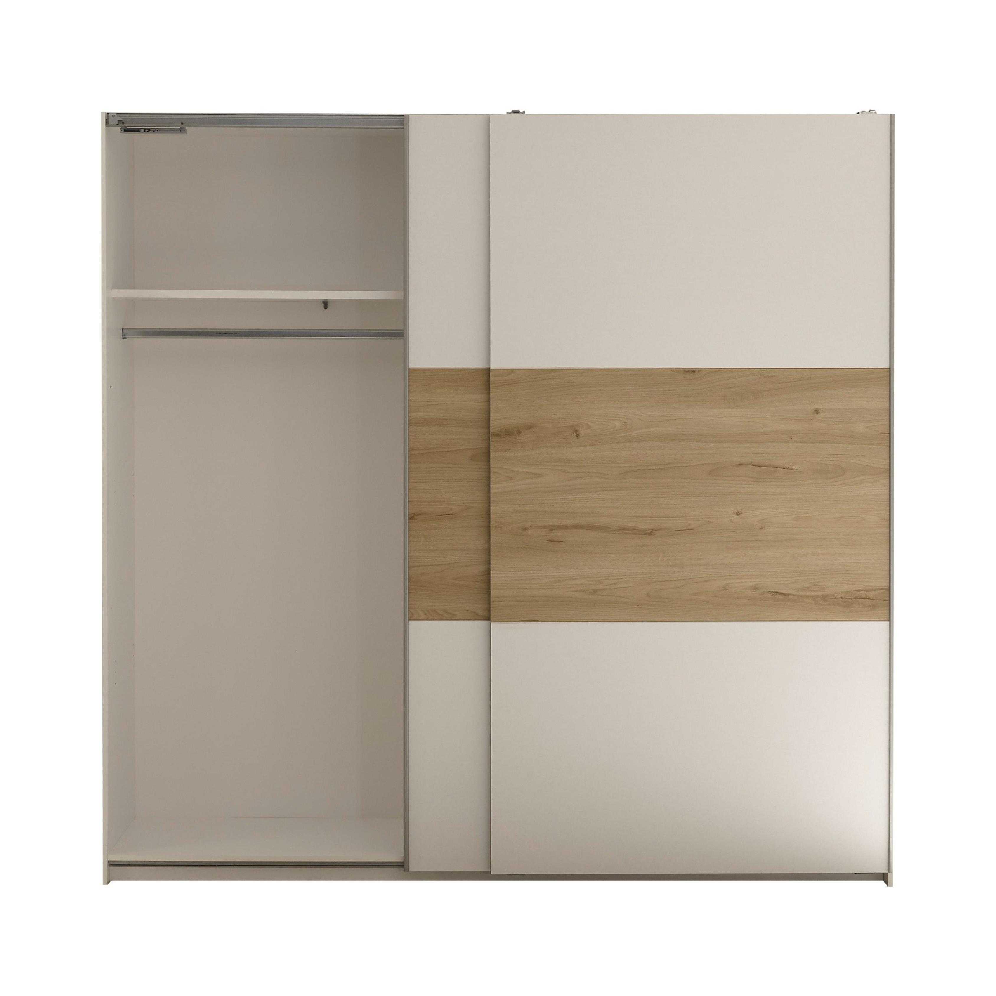 Wenn du aus deinen Räumen möglichst viel rausholen willst, dann sind Schränke mit Schiebetüren optimal — so wie dieser Schiebetürenschrank. Er nimmt keinen zusätzlichen Platz beim Öffnen und Schließen der Türen ein. Die Dekorfolie ist dekorativ und schützt das Möbelstück. Verschmutzungen und leichte Feuchtigkeit können so weniger leicht an das darunterliegende Material gelangen. Die Griffe aus Metall sind stabil und nutzen sich daher nicht so schnell ab.