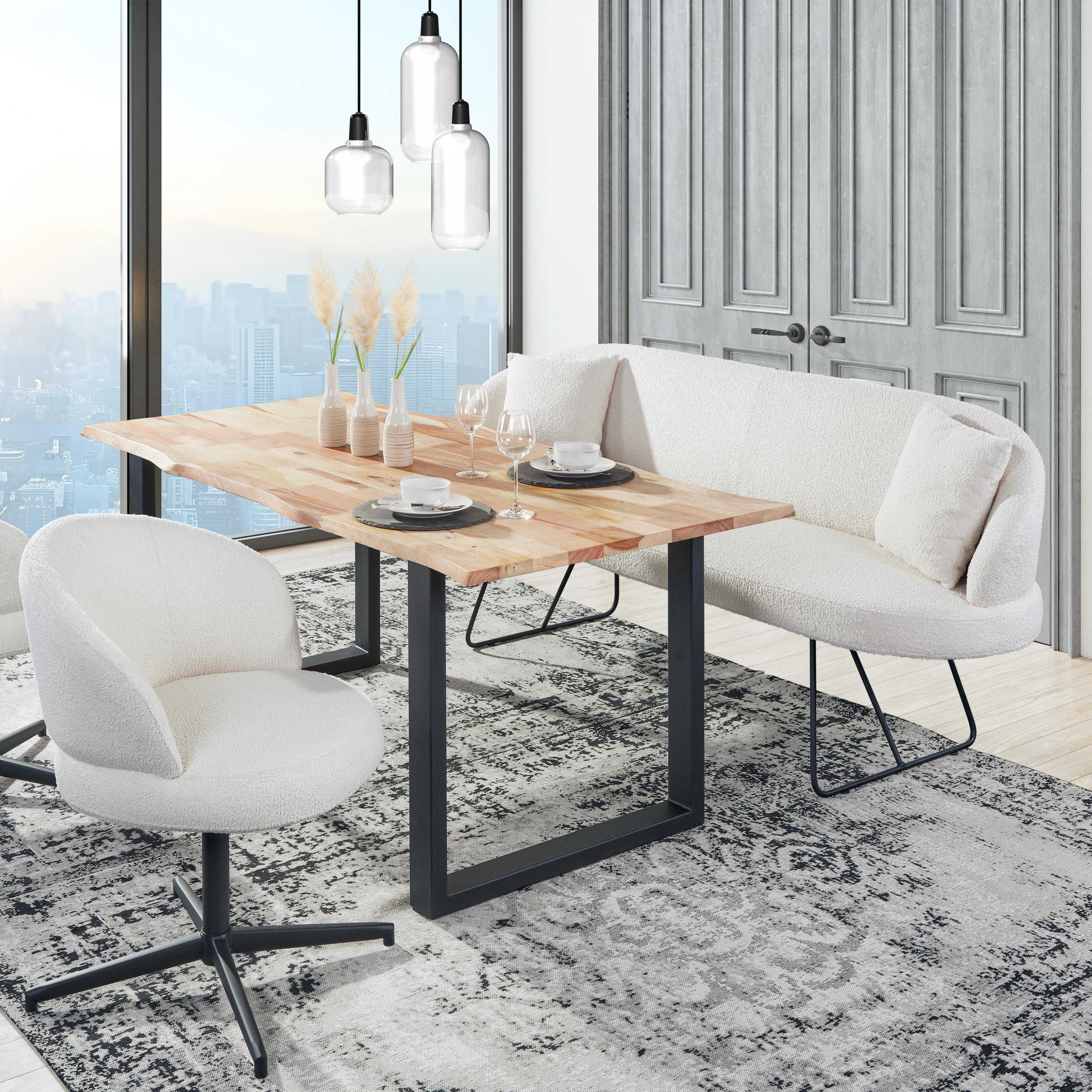 Dieses moderne Speisesofa mit Metallgestell in Schwarz vereint stilvolles Design mit komfortabler Funktionalität. Der hochwertige Stoffbezug in Naturell sorgt für eine warme, natürliche Ausstrahlung und lässt sich vielseitig mit verschiedenen Einrichtungsstilen kombinieren – von modern über skandinavisch bis industrial. Mit seinen Maßen von ca. 180 cm Breite, 88 cm Höhe und 65 cm Tiefe bietet das Sofa großzügigen Sitzkomfort für mehrere Personen und ist die ideale Ergänzung für Esszimmer, Küche oder offene Wohnbereiche. Das stabile schwarze Metallgestell verleiht dem Speisesofa nicht nur einen trendigen Look, sondern sorgt auch für hohe Stabilität und Langlebigkeit. Ob als Esszimmerbank mit Rückenlehne oder als stilvolle Sitzgelegenheit im Wohnraum – dieses Speisesofa überzeugt durch Design, Komfort und Qualität.