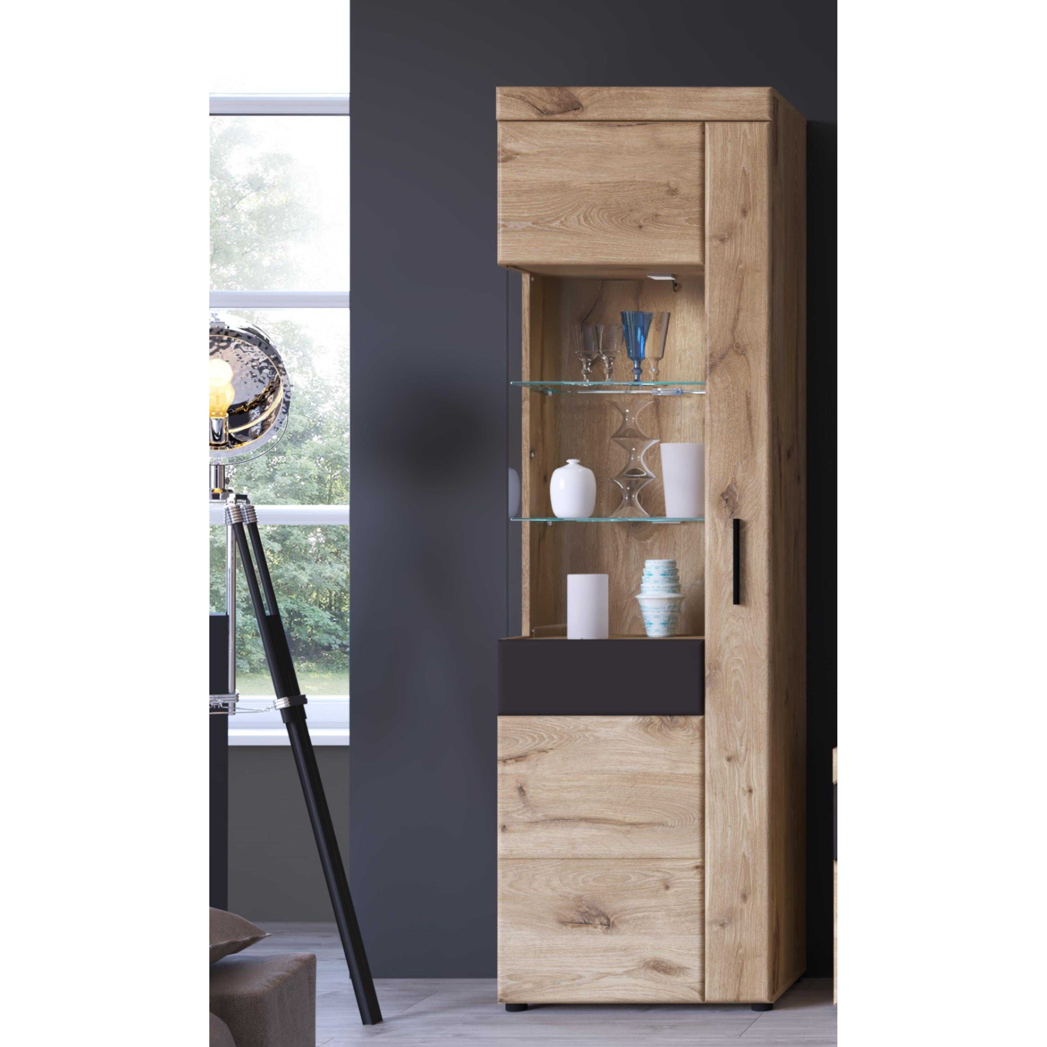 Mit einer Breite von 58 cm, einer Höhe von 195 cm und einer Tiefe von 37 cm ist die Vitrine platzsparend und dennoch geräumig. Die praktische Glas-/Holztür ermöglicht eine elegante Präsentation Ihrer Lieblingsstücke und schützt diese zugleich vor Staub. Die hochwertigen Materialien sorgen für Langlebigkeit und eine ansprechende Optik.